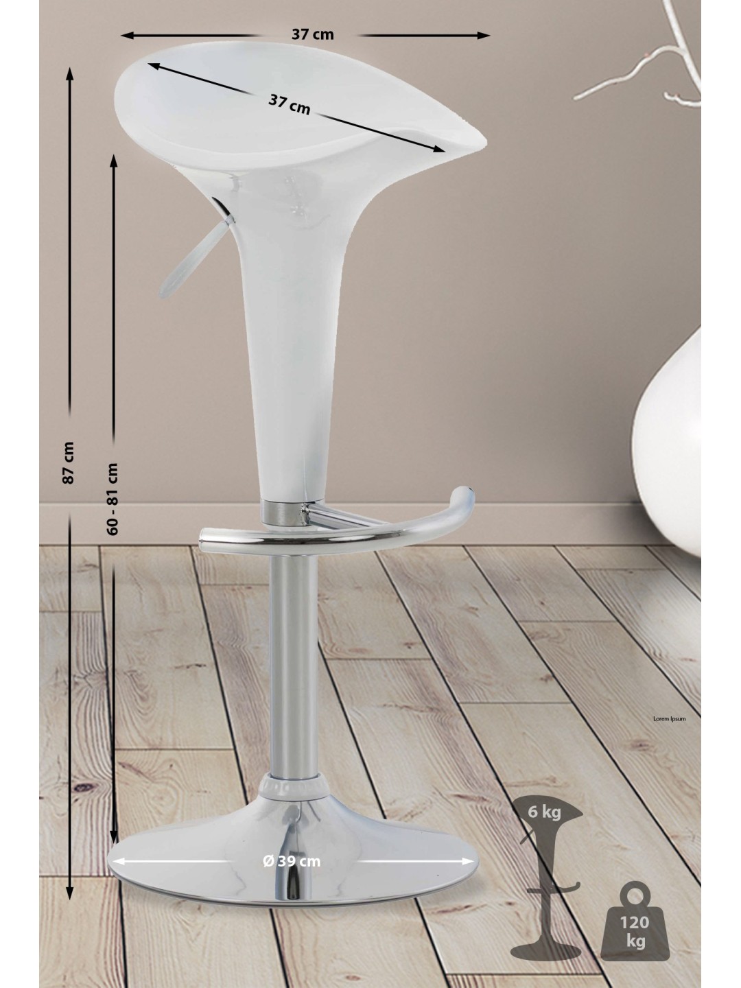 El taburete de bar Saddle impresiona por su diseño moderno y sus colores fuertes que desprenden un encanto juvenil. Gracias al elevador de gas, este modelo es regulable en altura y, por lo tanto, puede utilizarse de forma universal y se adapta a todas las alturas de mostrador. El asiento se puede girar 360° y su forma ergonómica se adapta a su cuerpo y le permite sentarse cómodamente durante horas y horas. Gracias al plástico, este taburete para mostrador es fácil de limpiar. La base de trompeta de metal con aspecto cromado está equipada con un reposapiés que favorece la comodidad al sentarse. Hay un anillo de goma debajo de la placa base para evitar daños al suelo.