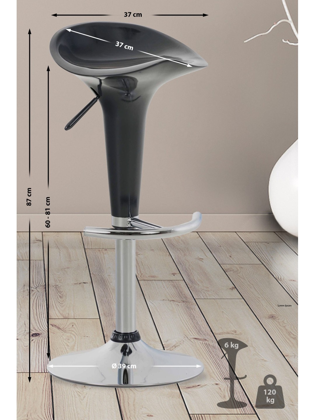 El taburete de bar Saddle impresiona por su diseño moderno y sus colores fuertes que desprenden un encanto juvenil. Gracias al elevador de gas, este modelo es regulable en altura y, por lo tanto, puede utilizarse de forma universal y se adapta a todas las alturas de mostrador. El asiento se puede girar 360° y su forma ergonómica se adapta a su cuerpo y le permite sentarse cómodamente durante horas y horas. Gracias al plástico, este taburete para mostrador es fácil de limpiar. La base de trompeta de metal con aspecto cromado está equipada con un reposapiés que favorece la comodidad al sentarse. Hay un anillo de goma debajo de la placa base para evitar daños al suelo.