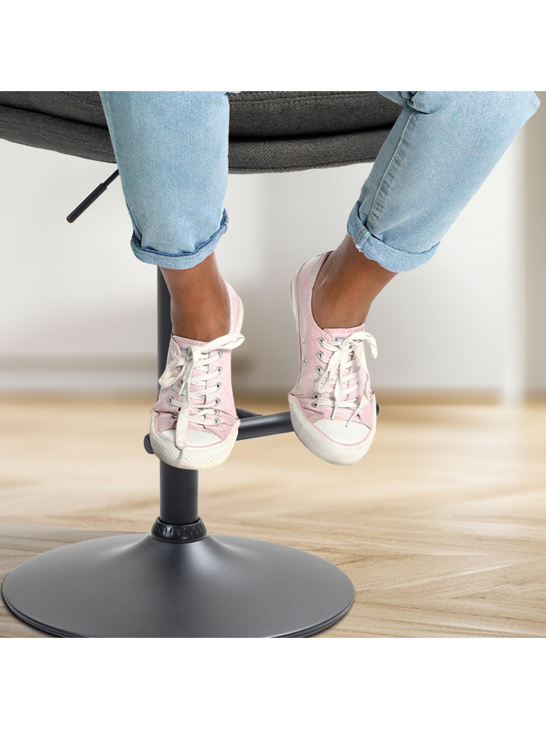 La estructura del taburete y la moderna funda le dan al taburete una apariencia elegante. El asiento está cubierto con una funda de tela duradera. La estructura de metal es ajustable en altura y la función de rotación de 360 grados garantiza una gran libertad de movimiento.