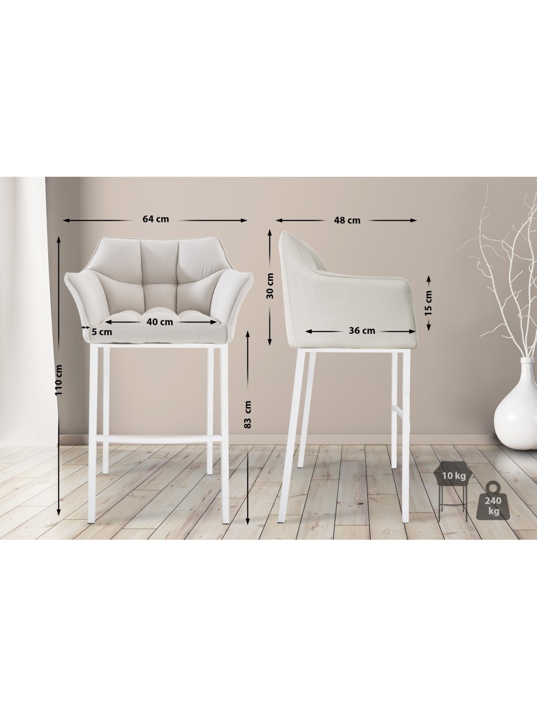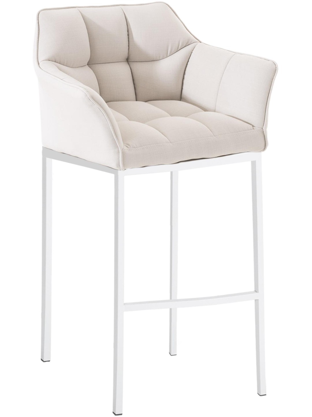 Taburete de bar tela Damaso con estructura de 4 pies, blanco