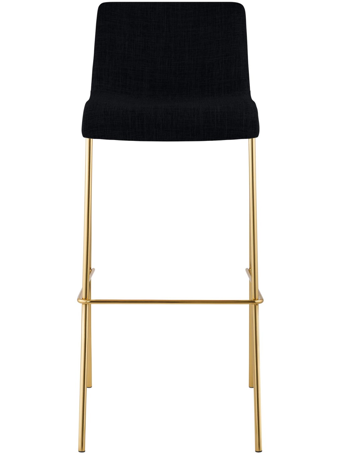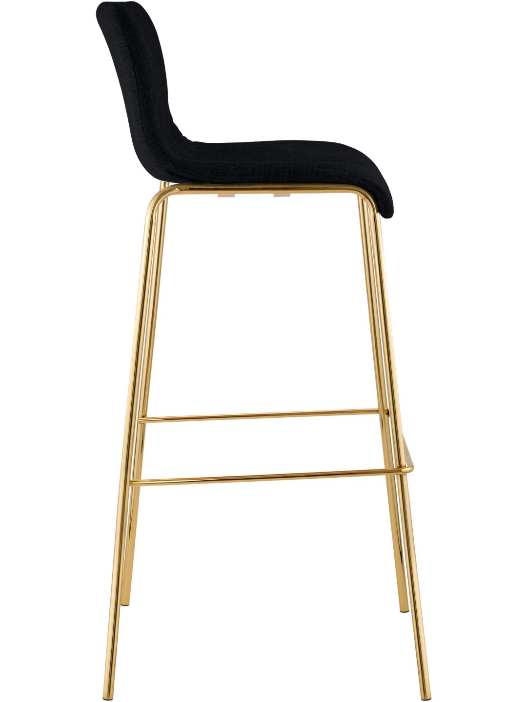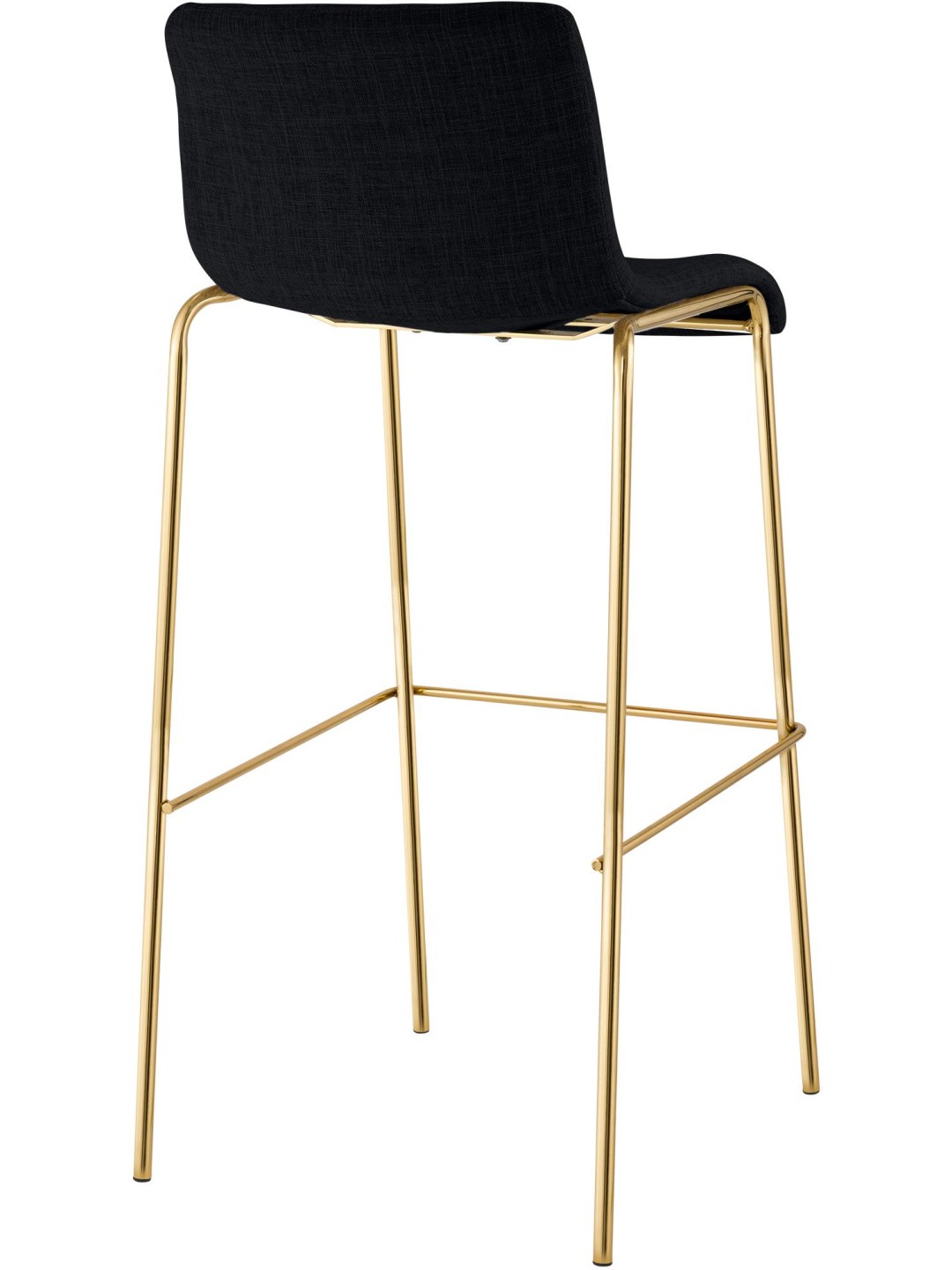 La carcasa del asiento y el respaldo tapizados con tela garantizan un asiento cómodo y alivian la tensión en la zona lumbar. Un reposapiés integrado ofrece comodidad adicional. El taburete debe su hermoso aspecto en particular a la estructura de metal con aspecto dorado.