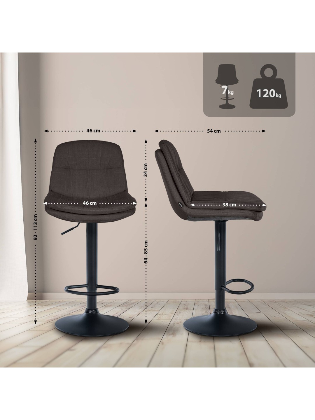 La estructura del taburete y la moderna funda le dan al taburete una apariencia elegante. El asiento está tapizado con tela duradera y de alta calidad. La estructura de metal es ajustable en altura y la función de rotación de 360 grados garantiza una gran libertad de movimiento.