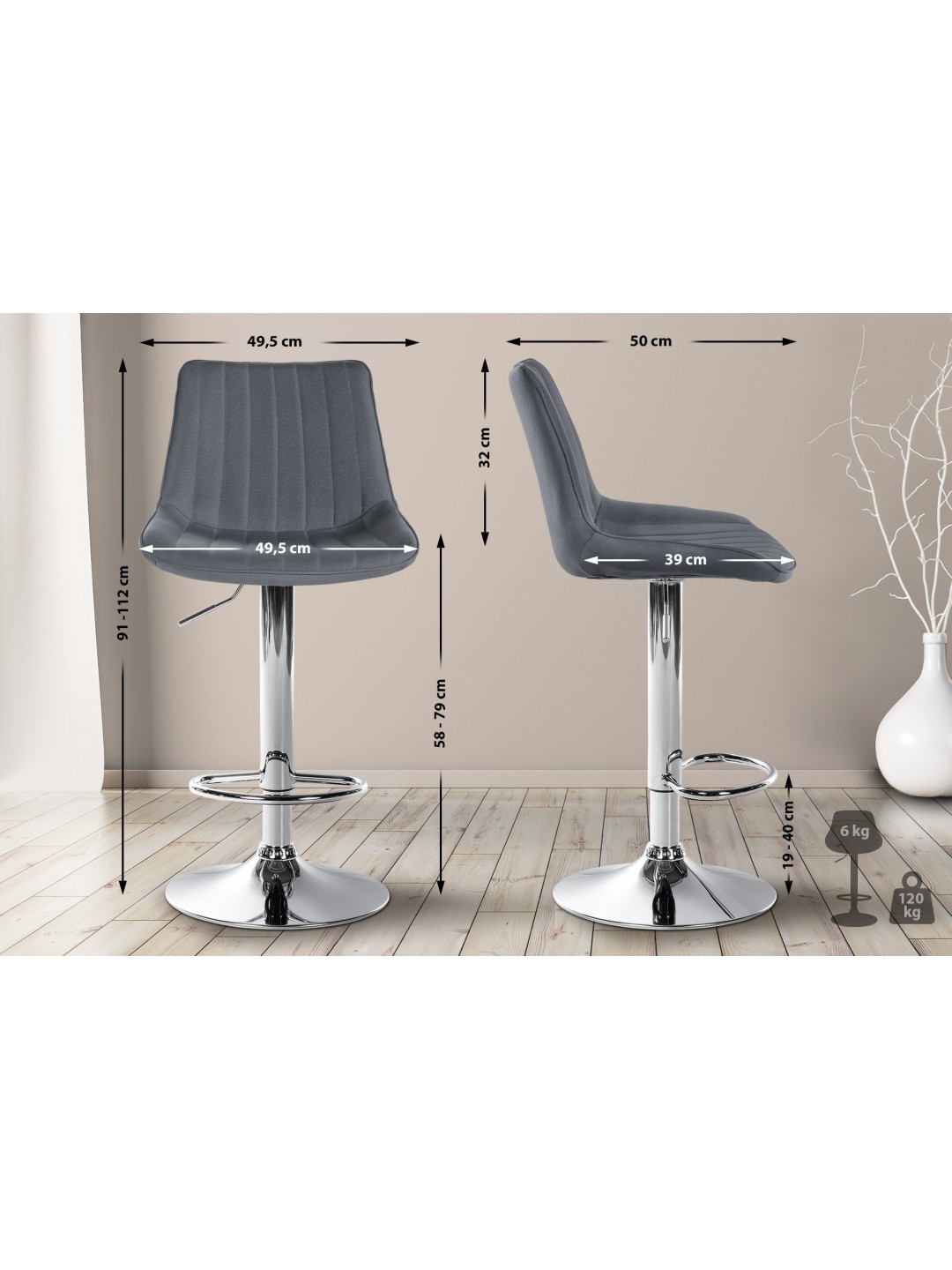 Este moderno taburete de bar se caracteriza por su diseño elegante y atemporal. El elegante asiento promete una fantástica experiencia al sentarse, porque el respaldo acolchado le brinda a su espalda el apoyo que necesita para sentarse cómodamente durante horas. El asiento está tapizado con un tejido de fácil cuidado y la estructura de metal con base en forma de trompeta ofrece una estabilidad muy alta. Gracias a las combinaciones de colores de libre elección, encontrará el taburete de bar adecuado para cada entorno de vida. El reposapiés curvo no deja que los pies cuelguen. El taburete del mostrador se puede ajustar infinitamente en altura mediante un elevador de gas y el asiento se puede girar 360°, lo que lo hace ideal para cualquier mostrador.