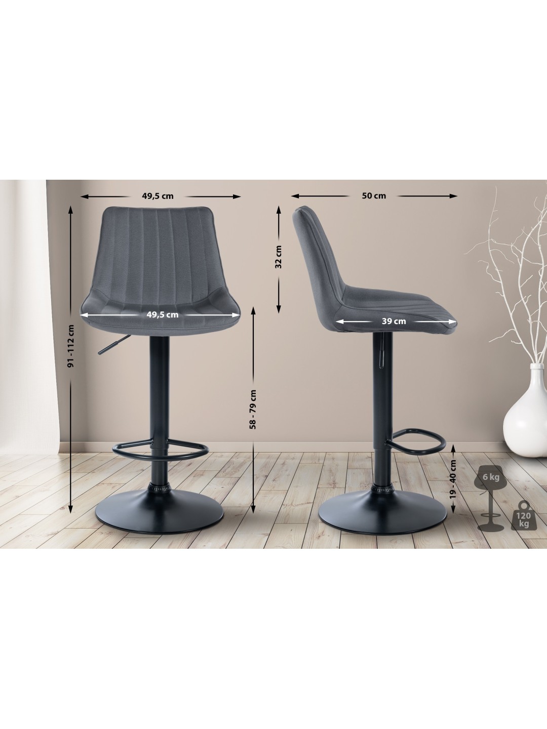 Este moderno taburete de bar se caracteriza por su diseño elegante y atemporal. El elegante asiento promete una fantástica experiencia al sentarse, porque el respaldo acolchado le brinda a su espalda el apoyo que necesita para sentarse cómodamente durante horas. El asiento está tapizado con un tejido de fácil cuidado y la estructura de metal con base en forma de trompeta ofrece una estabilidad muy alta. Gracias a las combinaciones de colores de libre elección, encontrará el taburete de bar adecuado para cada entorno de vida. El reposapiés curvo no deja que los pies cuelguen. El taburete del mostrador se puede ajustar infinitamente en altura mediante un elevador de gas y el asiento se puede girar 360°, lo que lo hace ideal para cualquier mostrador.