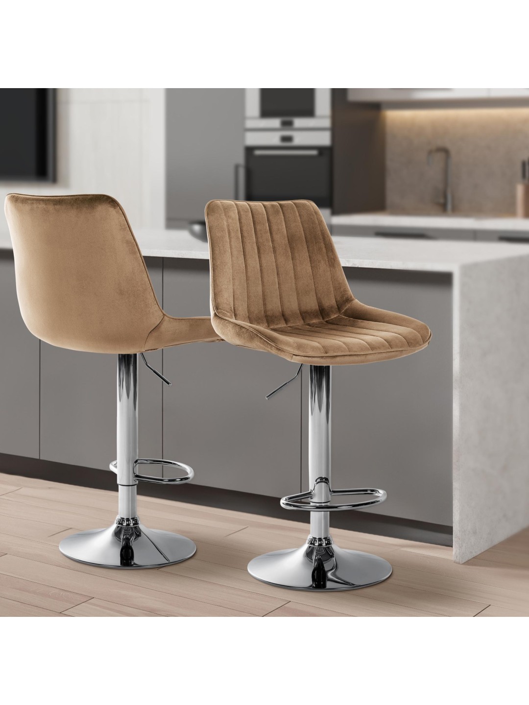 Este moderno taburete de bar se caracteriza por su diseño elegante y atemporal. El elegante asiento promete una fantástica experiencia al sentarse, porque el respaldo acolchado le brinda a su espalda el apoyo que necesita para sentarse cómodamente durante horas. El asiento está fabricado con una funda de terciopelo de fácil cuidado y la estructura de metal con base de trompeta ofrece una gran estabilidad. Gracias a las combinaciones de colores de libre elección, encontrará el taburete de bar adecuado para cada entorno de vida. El reposapiés curvo no deja que los pies cuelguen. El taburete del mostrador se puede ajustar infinitamente en altura mediante un elevador de gas y el asiento se puede girar 360°, lo que lo hace ideal para cualquier mostrador.
