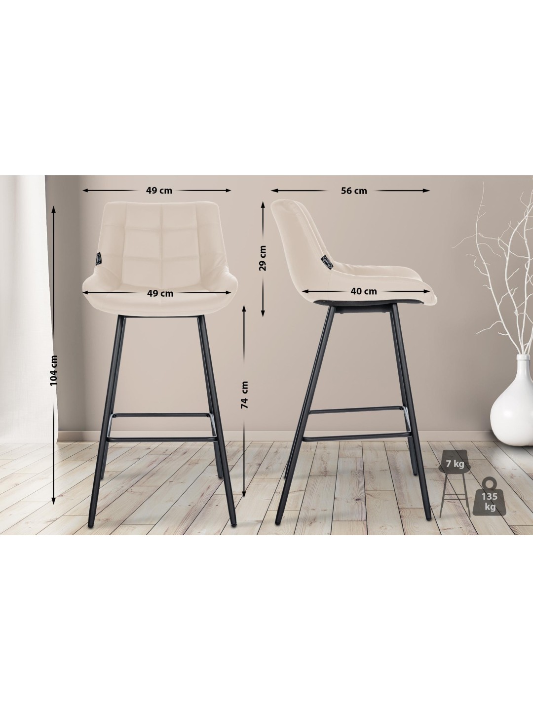 El taburete de bar Weston encarna estilo y estabilidad en perfecta armonía. Equipado con un elegante patrón acolchado en terciopelo o piel sintética, llamará la atención en cualquier bar o isla de cocina. El cómodo acolchado junto con el respaldo ergonómico prometen una experiencia de asiento excepcionalmente cómoda. La sólida estructura de cuatro patas proporciona la estabilidad necesaria y está equipada con protectores de suelo. El reposapiés integrado aumenta aún más la comodidad al sentarse y hace que el taburete de bar Weston sea la opción ideal para largas horas de sociabilidad. Ya sea para uso comercial o en casa, esta silla de bar promete longevidad e impresiona por sus propiedades de fácil cuidado.