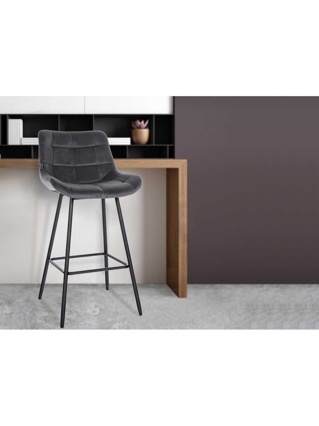 El taburete de bar Weston encarna estilo y estabilidad en perfecta armonía. Equipado con un elegante patrón acolchado en terciopelo o piel sintética, llamará la atención en cualquier bar o isla de cocina. El cómodo acolchado junto con el respaldo ergonómico prometen una experiencia de asiento excepcionalmente cómoda. La sólida estructura de cuatro patas proporciona la estabilidad necesaria y está equipada con protectores de suelo. El reposapiés integrado aumenta aún más la comodidad al sentarse y hace que el taburete de bar Weston sea la opción ideal para largas horas de sociabilidad. Ya sea para uso comercial o en casa, esta silla de bar promete longevidad e impresiona por sus propiedades de fácil cuidado.