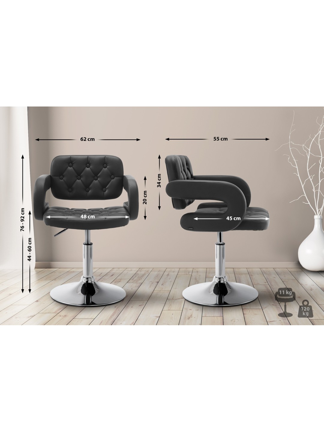 Con reposabrazos curvos y un respaldo para la zona lumbar, ofrece un apoyo cómodo, especialmente para la zona lumbar. La robusta estructura de metal garantiza estabilidad y una capacidad de carga de hasta 120 kilogramos. Los protectores de suelo protegen los suelos de arañazos.
