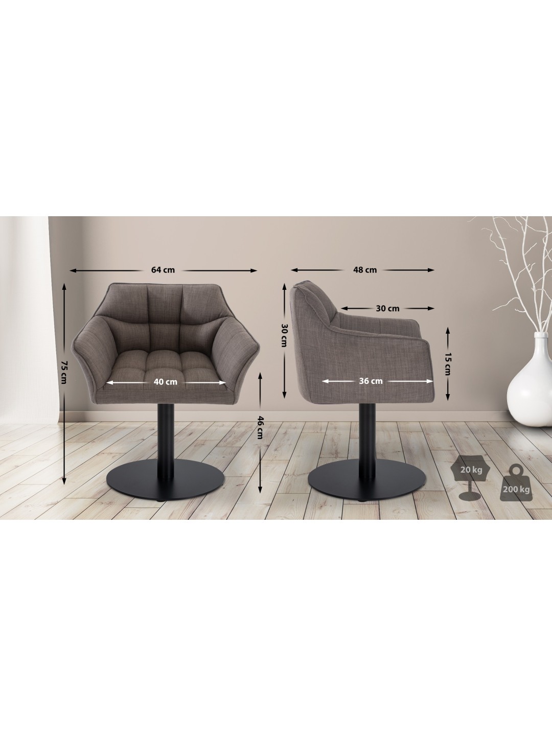 Profundidad del reposabrazos: 30 cm