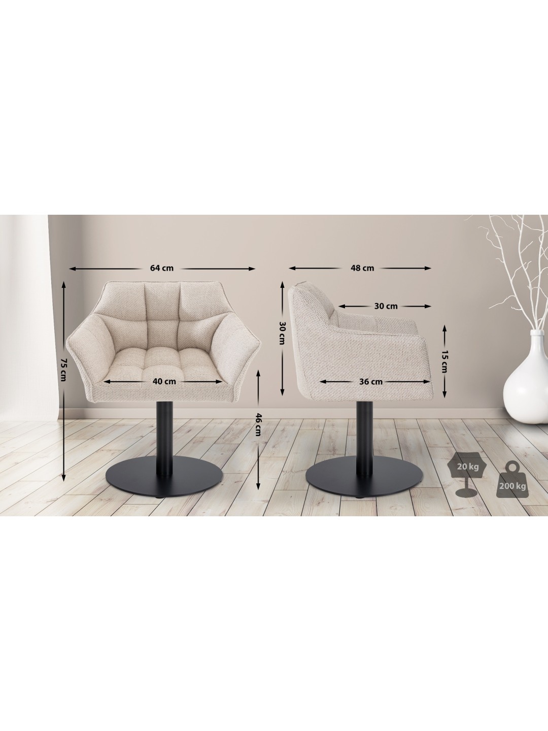 Profundidad del reposabrazos: 30 cm