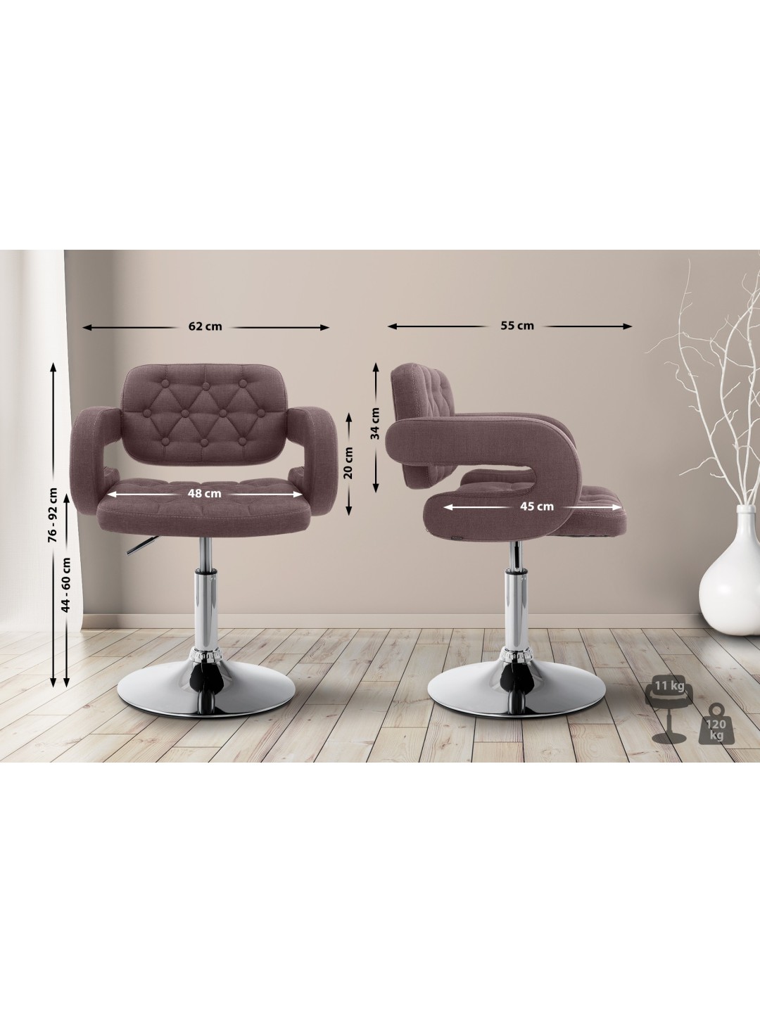 Superficie del asiento (AnxPr): 62 x 55 cm