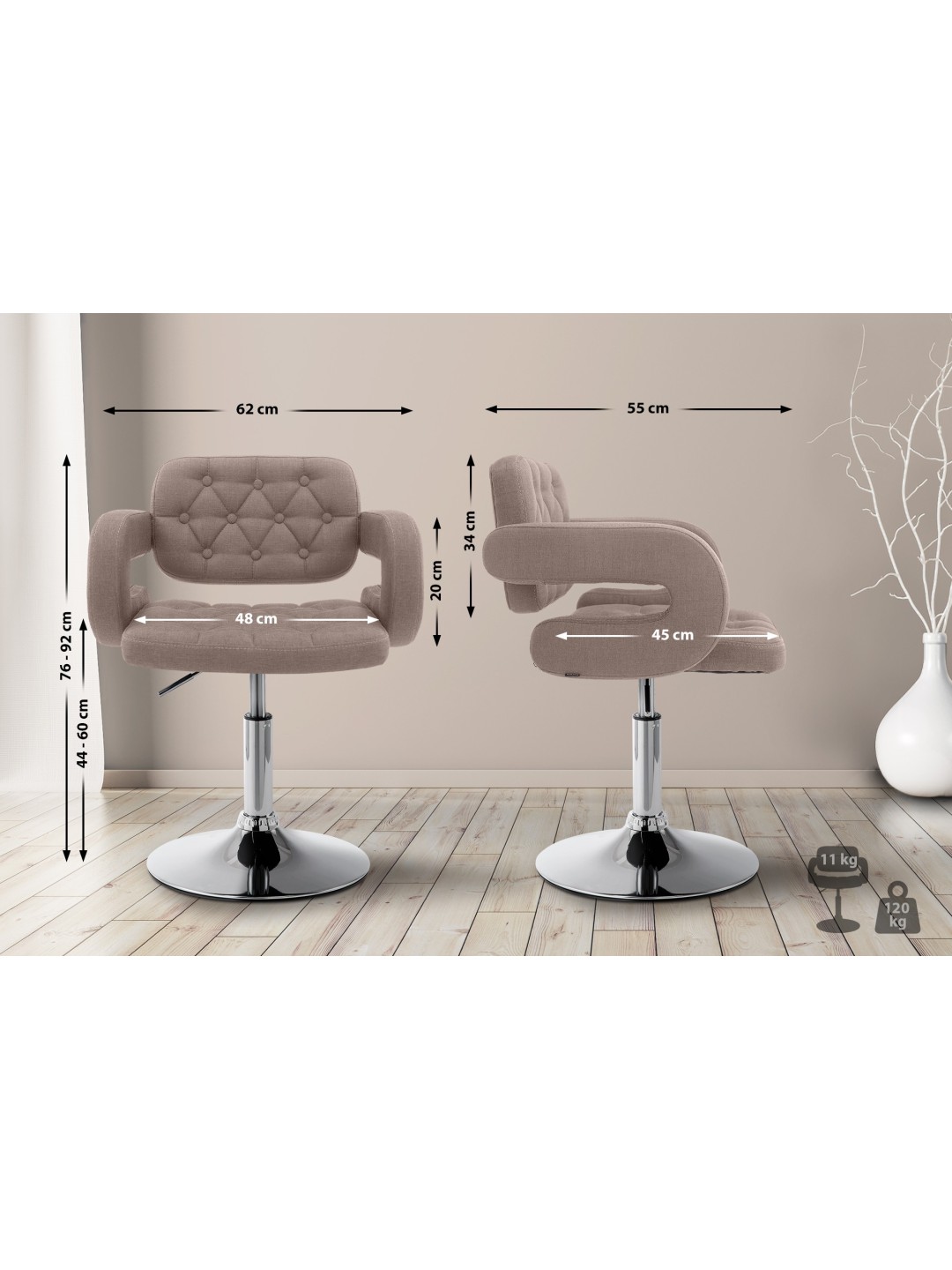 La silla tapizada es regulable en altura de forma continua, de modo que la altura del asiento se puede ajustar entre 44 y 60 cm. Esto significa que la silla se puede utilizar para diferentes alturas de mesa y tamaños de cuerpo.