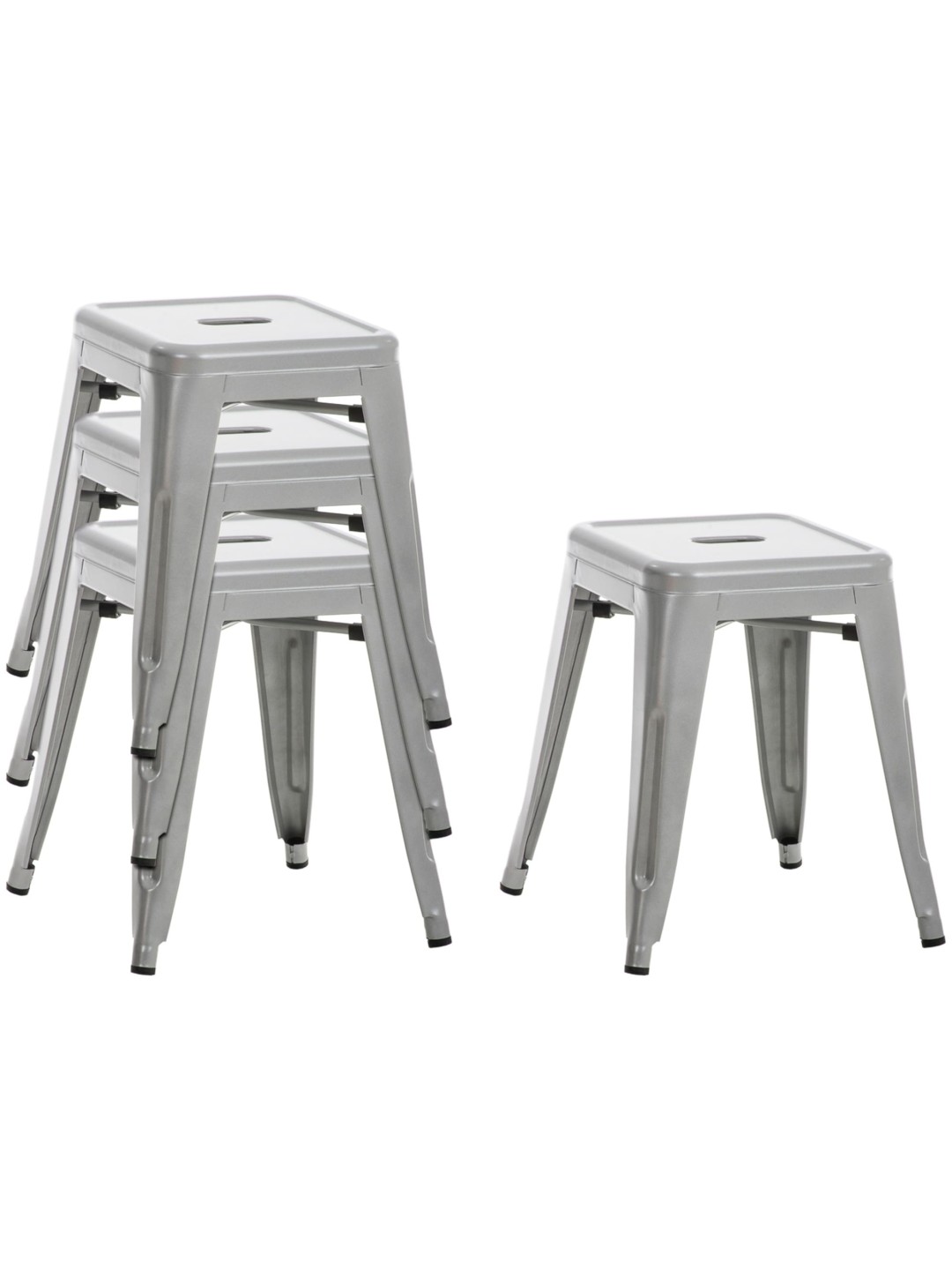 Práctico: la superficie pintada es extremadamente fácil de cuidar y se puede limpiar fácilmente con un paño húmedo. Si no hay suficiente espacio, los taburetes se pueden apilar fácilmente en un abrir y cerrar de ojos.