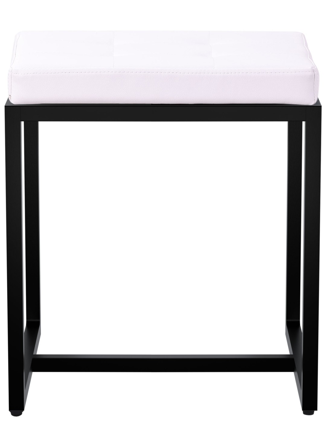 Se sostiene de manera estable sobre una estructura de cuatro patas y ofrece una comodidad especial gracias al asiento acolchado de alta calidad con un patrón acolchado. El taburete está disponible con tapizado en piel sintética, terciopelo o tela. La robusta elaboración del hierro con recubrimiento en polvo garantiza una calidad y fiabilidad duraderas.