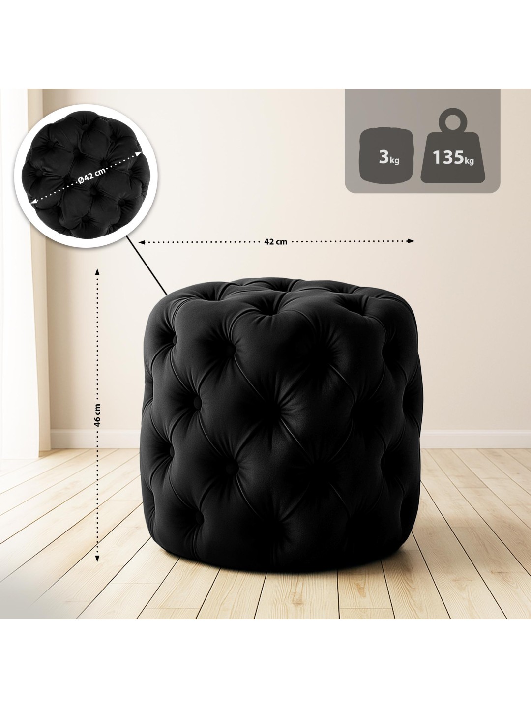 Lleva el elegante diseño Chesterfield a tu hogar con nuestro taburete versátil hecho de terciopelo de alta calidad. La superficie del taburete está completamente cubierta con llamativos botones decorativos y encaja perfectamente con el estilo atemporal inglés Chesterfield. Como asiento, como reposapiés o como mesita de noche o de café, queda muy bien y aporta un encanto elegante a cualquier ambiente. Hay protectores de suelo debajo de la estructura que evitan que el suelo se raye y, gracias a los materiales utilizados, el taburete es especialmente fácil de cuidar.